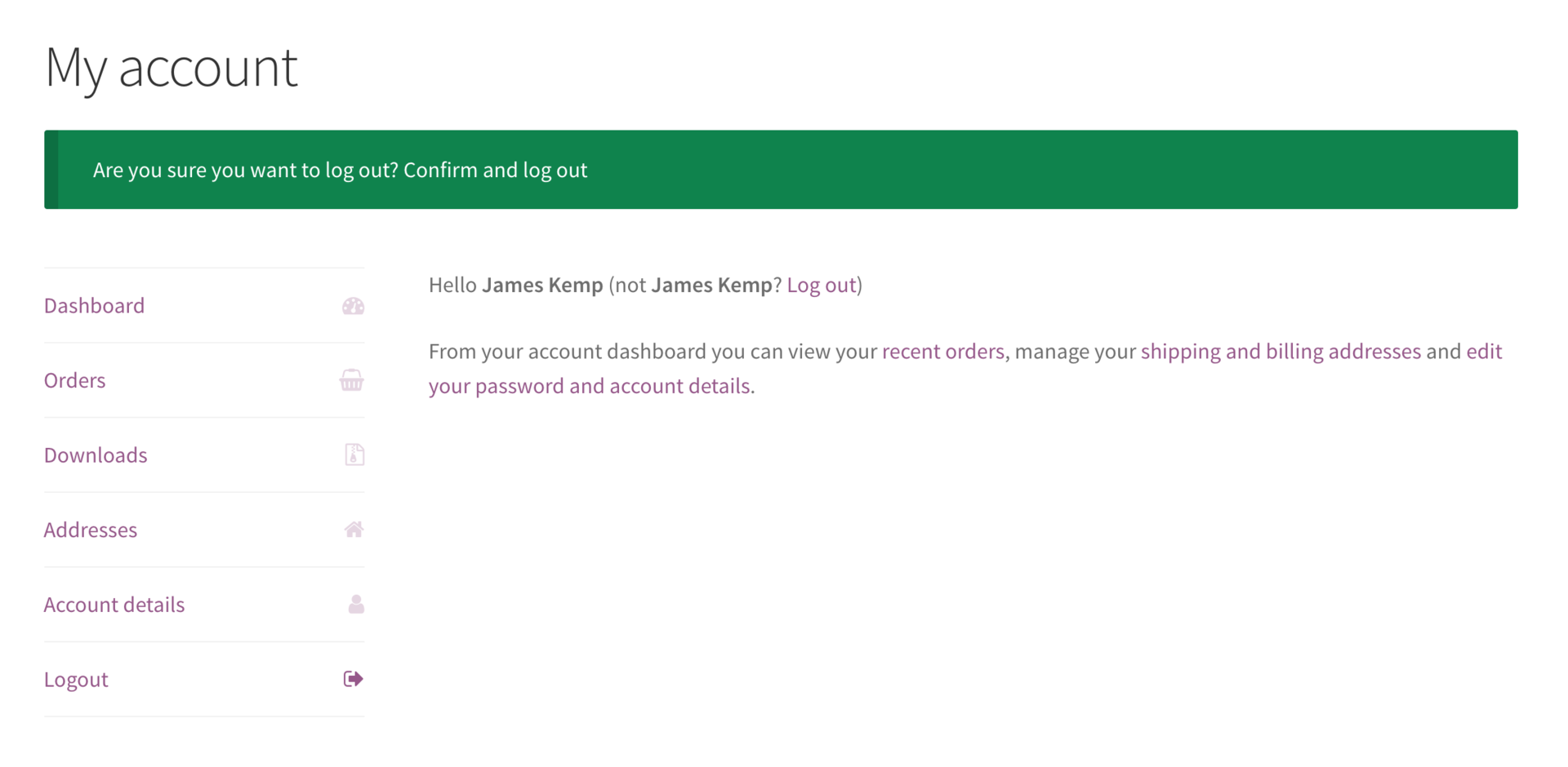 In the latest versions of WooCommerce, when a customer clicks the “logout” button in their account, they see a message: