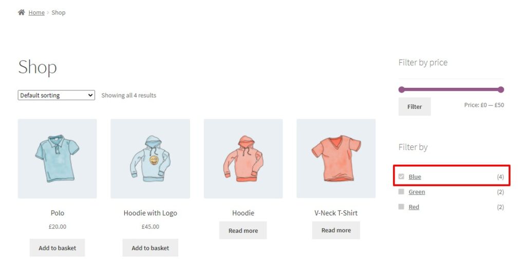 - Once happy with your selection, view your store on the front end of your site and your new product filters will be added.