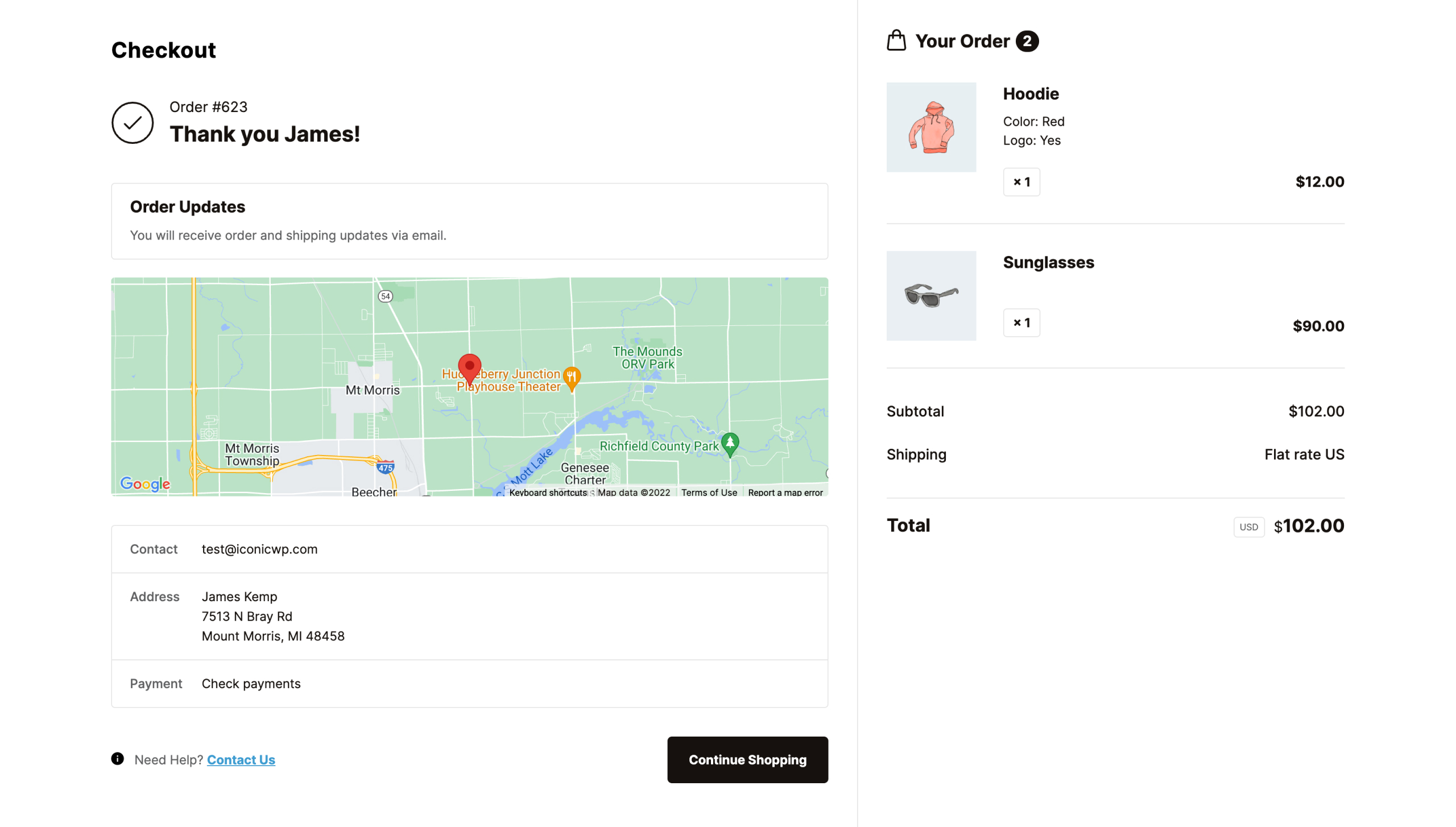 In the default WooCommerce install, the order confirmation page is a receipt page showing the order details, customer details, and shipping information. You can upgrade its design elements and add features to create an effective order confirmation page. To do this, you’ll need the Flux Checkout for WooCommerce plugin.