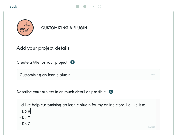 On the next page, you’ll be able to indicate how complex and urgent your project is. Make your selection and you’ll see a rough estimate from Codeable. If you’re happy, click Continue.