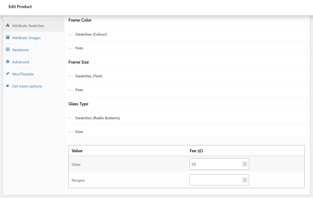 If you’re looking to include additional fees for one or more of your attributes, you can do so with WooCommerce Attribute Swatches.