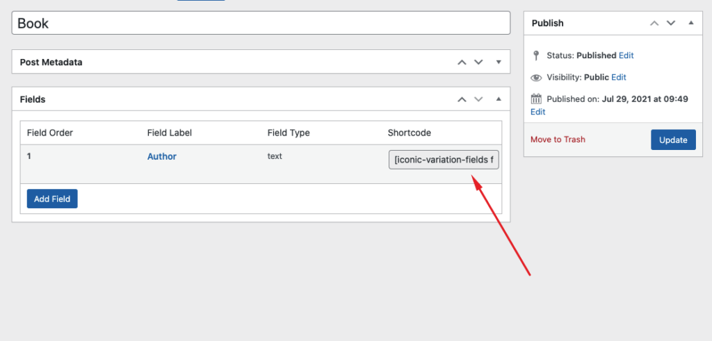 Currently, Custom Fields for Variations has 1 shortcode iconic-variation-fields. This shortcode will display the variation’s custom fields on your site.