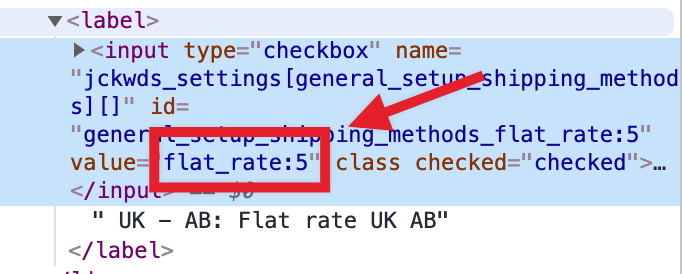 4. This will reveal the input field and its value. The value is the shipping method you want to use in the code above:
