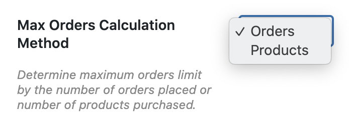 On this page you can choose whether to base max order calculations on Orders or Products.