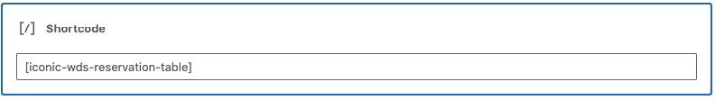 Shortcodes help you add pre-built content to your store. In this case, it will add a reservation table. Shortcodes are displayed inside square brackets like this: [iconic-wds-reservation-table]