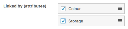5. Click the Color and Storage checkboxes. Here you can drag/drop to change the order they appear on the product page if you need to.