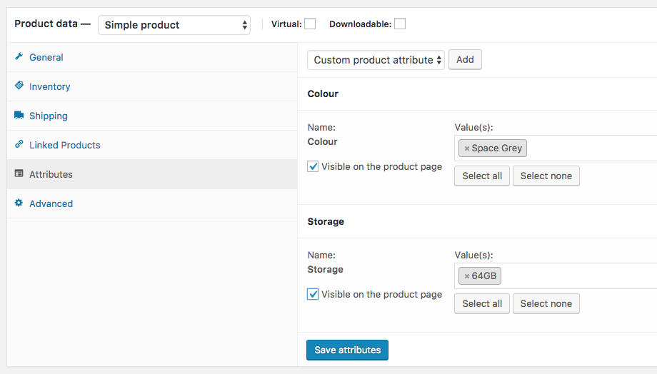 Now we’ve created our attributes, let’s create some products.