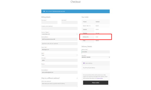 Easy to change checkout labels; you can even change them based on the selected shipping method. I.e., “Delivery Date” or ‘Collection Date.’