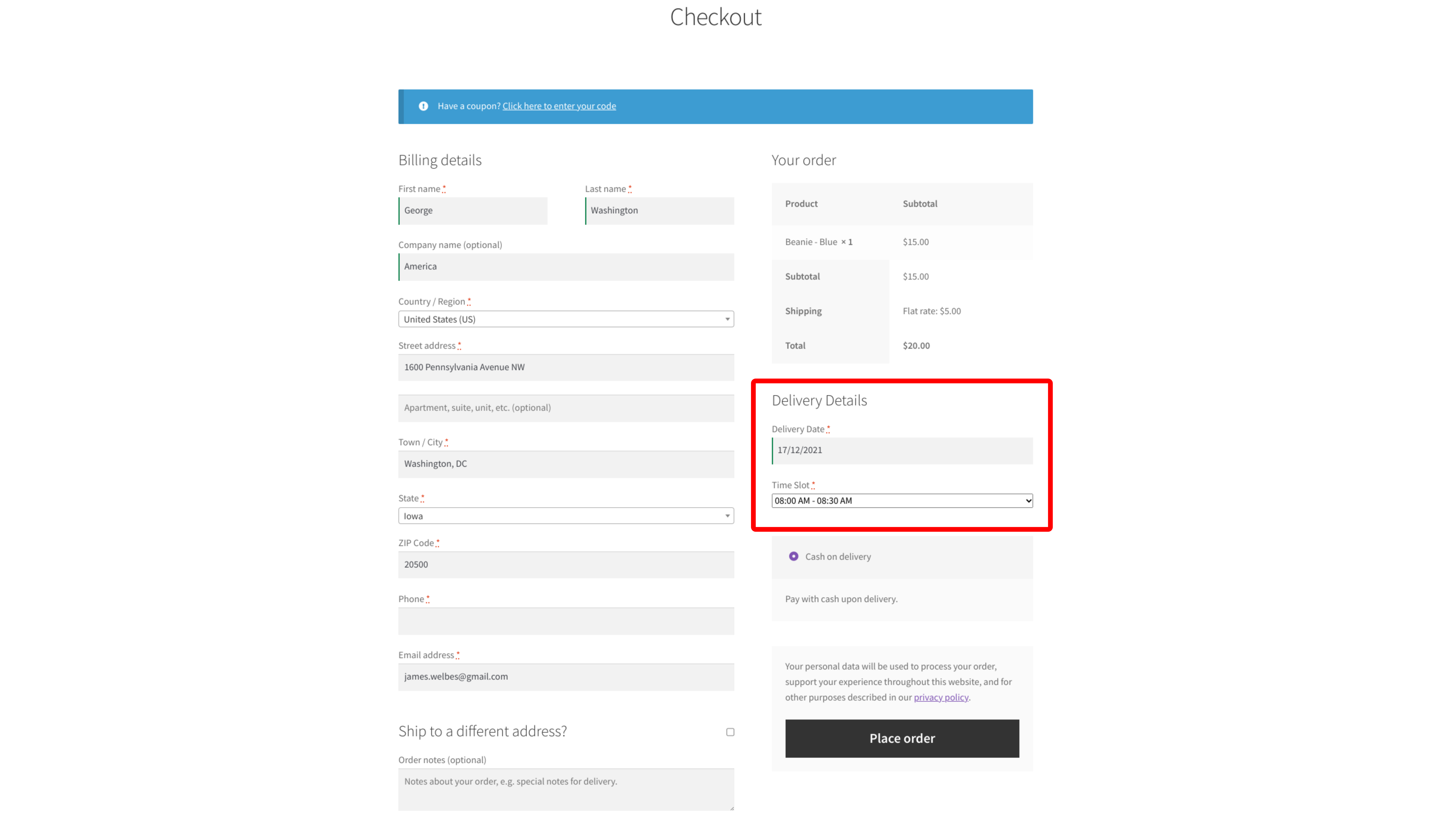 Add Delivery Date and Delivery Time to the Checkout Page
